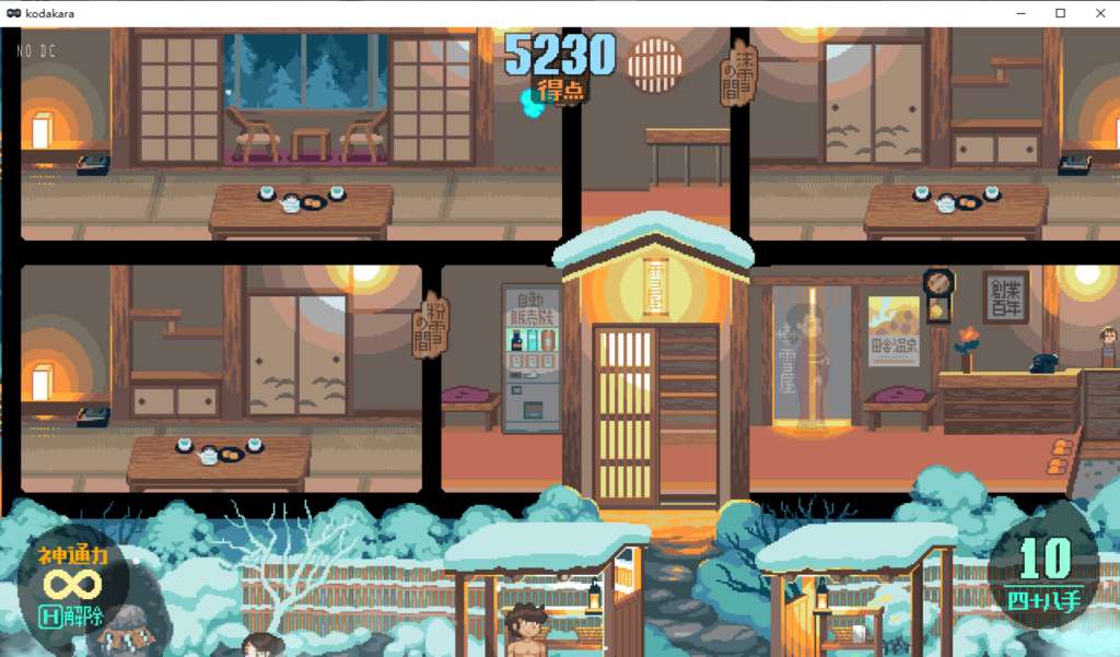 由「こぐま企画」制作的像素风、箱庭类冒险模拟器。正如标题,游戏在这间雪屋温泉旅馆展开。【无汉化】全程无剧情 。主要可交流的角色有六位,佐藤、铃木与田中夫妻,NPC 还另有一位的旅馆老板娘。玩家只要操作小蓝象跳到旅客头上,就可以自由移动,看是要去泡温泉还是吃饭,或是熄灯睡觉。或者去做点运动,6人可以任意搭配组合。解压小游戏··